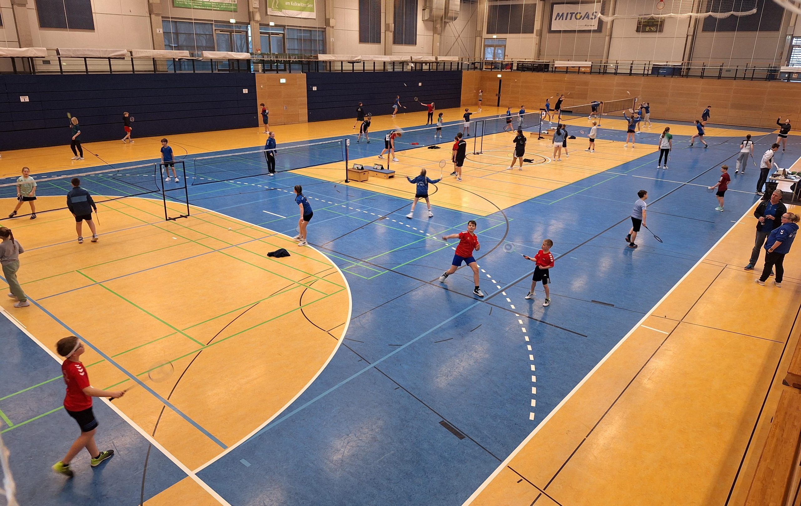 Bei insgesamt 63 Spielerinnen und Spielern aus 14 Vereinen gab es ein buntes Treiben in unserer gut vorbereiteten Halle. Sogar aus Radebeul nahmen Spieler den weiten Weg auf sich, um an unserem Turnier teilzunehmen. Auf sechs Feldern in insgesamt 76 Matches wurde um Ranglistenpunkte, Platzierungen und Urkunden gekämpft.
